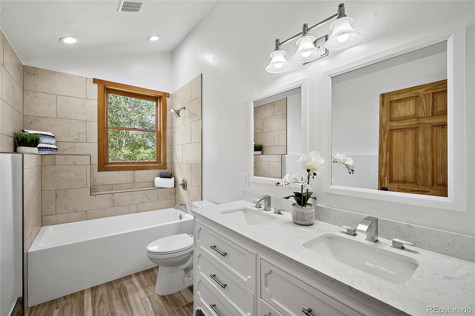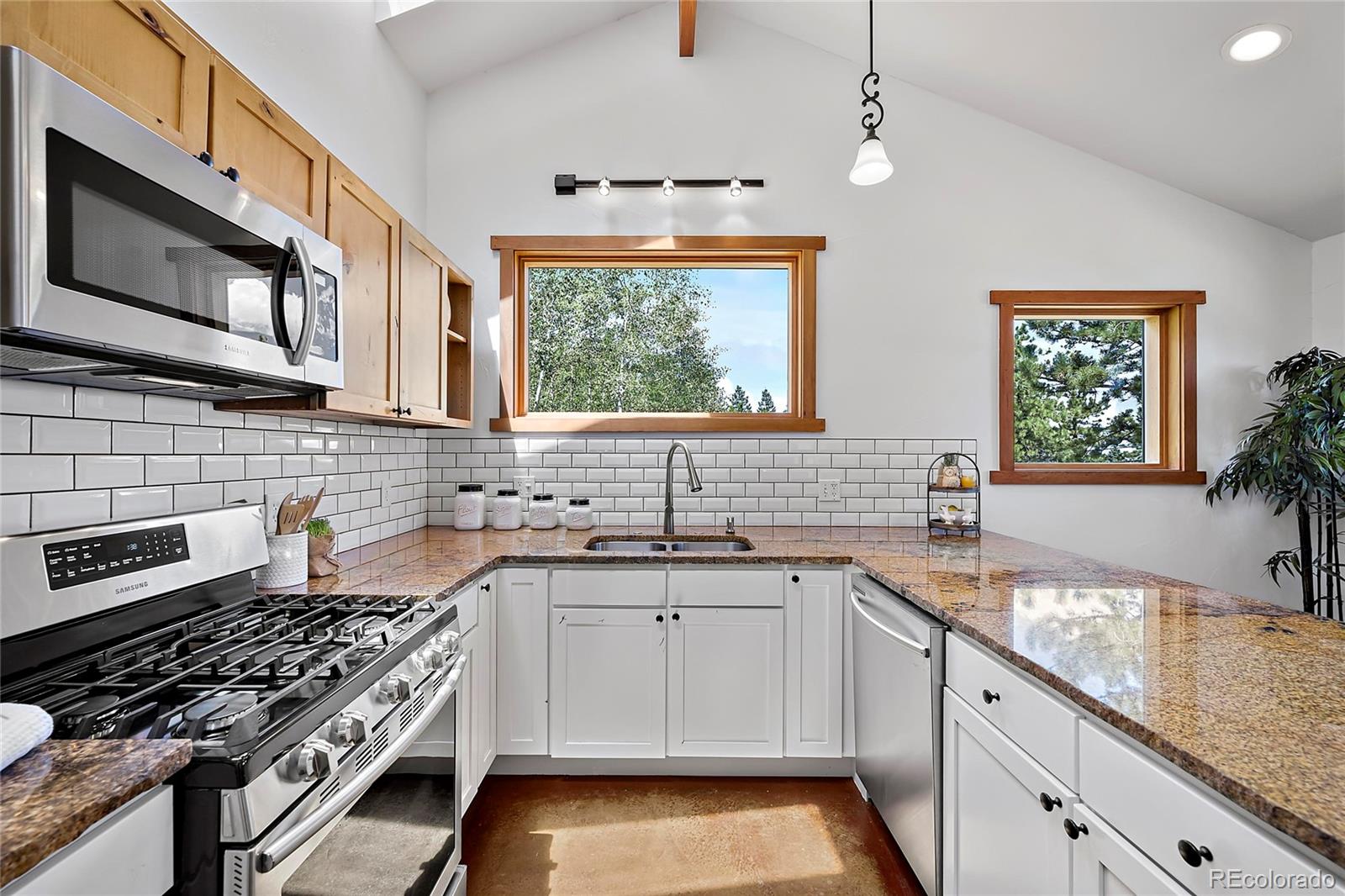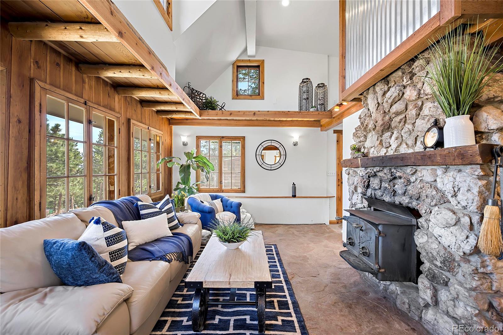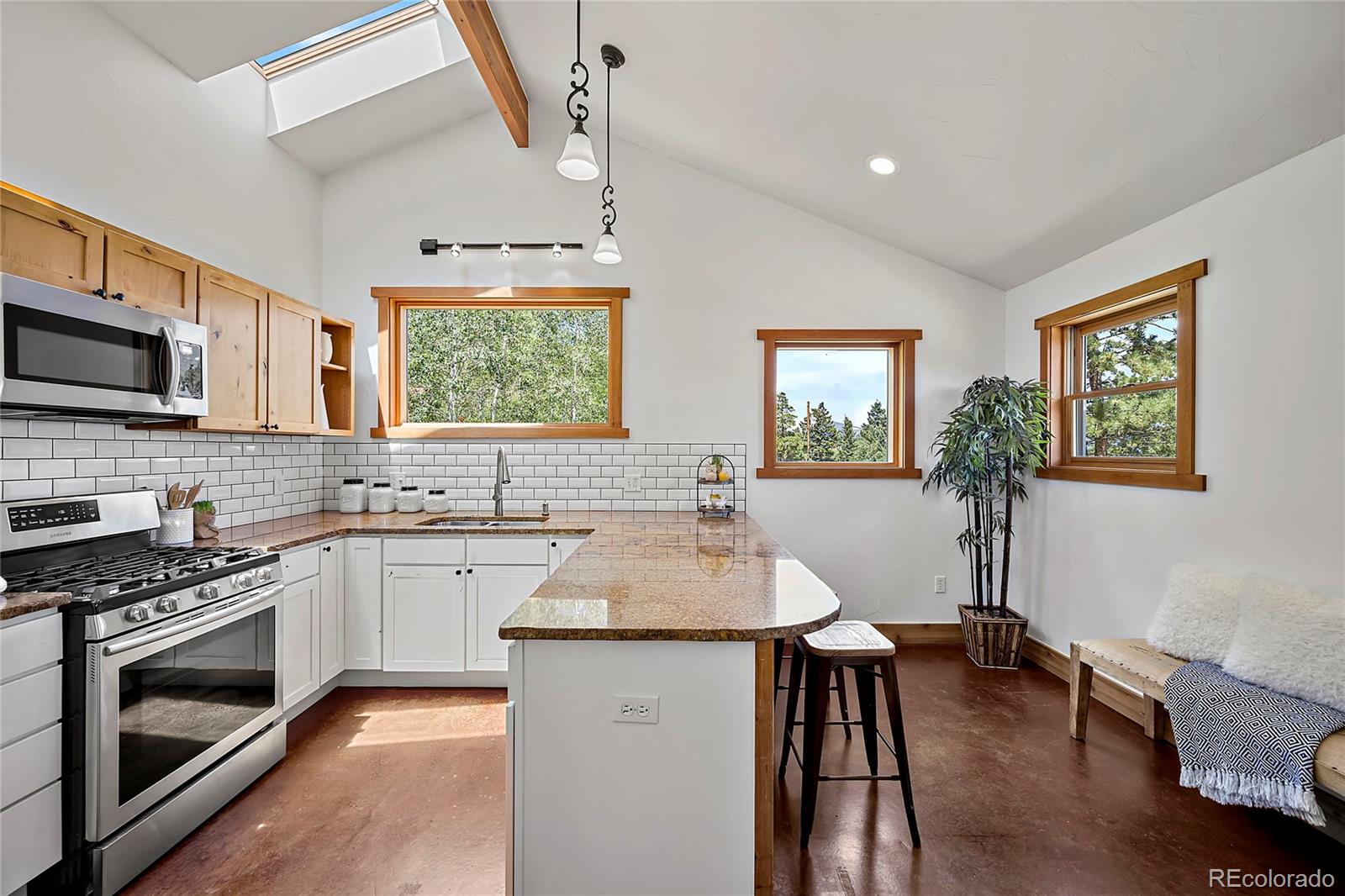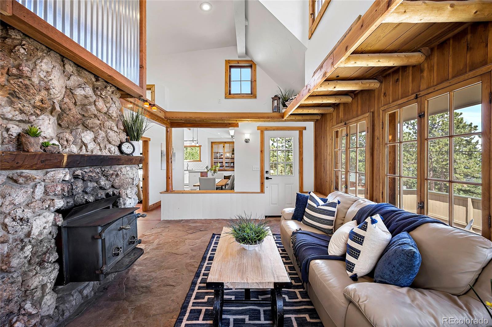 The best of mountain living has finally arrived in Coal Creek Canyon! We are very proud to present this gorgeous Wondervu home that has the perfect blend of old and new! The original cabin built in 1925 still stands along with the addition that was added by skilled carpenter and builder/owner to create the incredible space that is there today. Fully updated from head to toe, this home feels brand new, while retaining all of the character of the original cabin. The Vaulted ceilings make the space feel huge and the skylights throughout bring massive amounts of natural light into every room. Brand new boiler installed last year, new pressure tank for well and new pump saver system. The radiant floor heat will keep your toes warm throughout the winter and there is no better place to cozy up than in front of the large stone fireplace. Fresh paint inside and out, updated kitchen and newly remodeled bathrooms! As soon as you enter, you will see that a lot of care and thought were put into each detail.