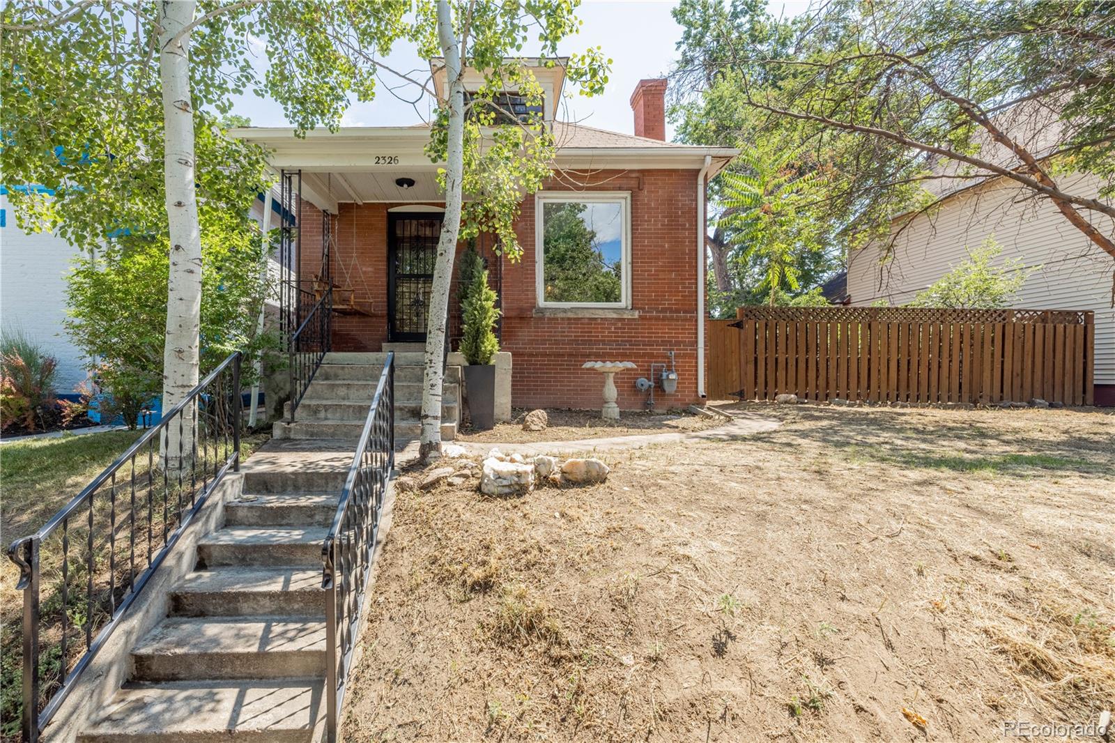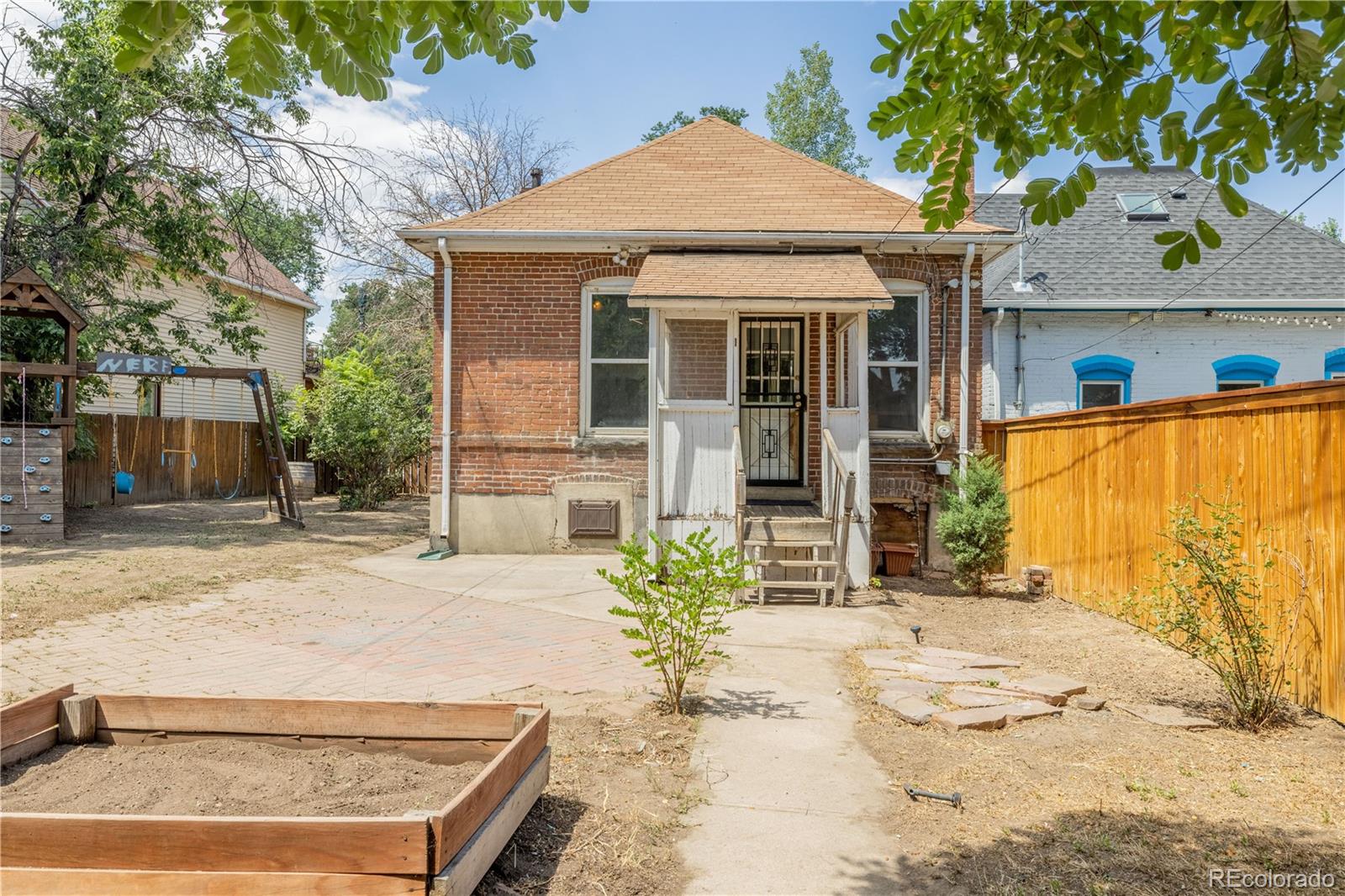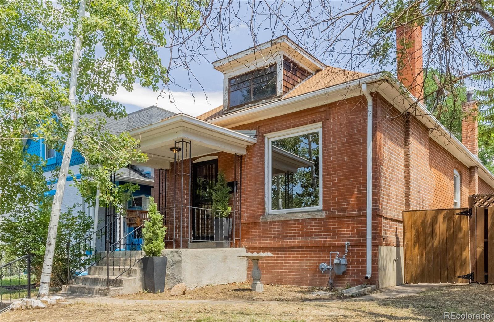 PRICE IMPROVEMENT! Here's your opportunity to purchase a home on a double lot in Denver's Whittier neighborhood for under $600,000! Handcrafted details adorn every surface of this red brick bungalow. Original stained glass lighting, hardwood floors, beautiful tiled copper fireplace with oak mantel and intricate crown moldings transport you back to a time of superior craftsmanship. The spacious main level has 1100 square feet, featuring a giant primary bedroom and ensuite bath with farmhouse sink and clawfoot tub. This large bedroom can easily be converted back to two bedrooms to make this a three bedroom home on the main floor. A classic living room with high ceilings and lots of natural light opens into a dining room with large southern facing windows. The kitchen has a great layout overlooking the huge backyard. Another large bedroom off the kitchen offers a flexible space with the same historic accents and high ceilings. Downstairs 1100 sq ft of unfinished basement offers so much flexibility and potential. This home could easily have 5 bedrooms or a completely separate 2 bedroom apartment. ADU zoning means you can possibly finish the basement with its own address and create a separate income stream with AirBnB, VRBO, or Evolve. An exterior entrance to the basement is a house hacker's dream come true and could be paired with a separate side yard to create privacy and higher ROI. If this wasn't enough, the 50 foot wide double lot has alley access and room for a 4-car garage with an accessory dwelling unit on top. This yard with existing sprinkler system has plenty of room for Colorado living and is just waiting for your artistic vision. Whittier is old-school Denver at its finest with tree-lined streets, beautiful victorian homes, parks, libraries and close proximity to some of the city's hippest neighborhoods. Walk to the Zoo, History Museum, City Park/golf course, Uptown, Cole, Curtis Park, LoDo, RiNo and the nearby light rail station. Opportunity Knocks!
