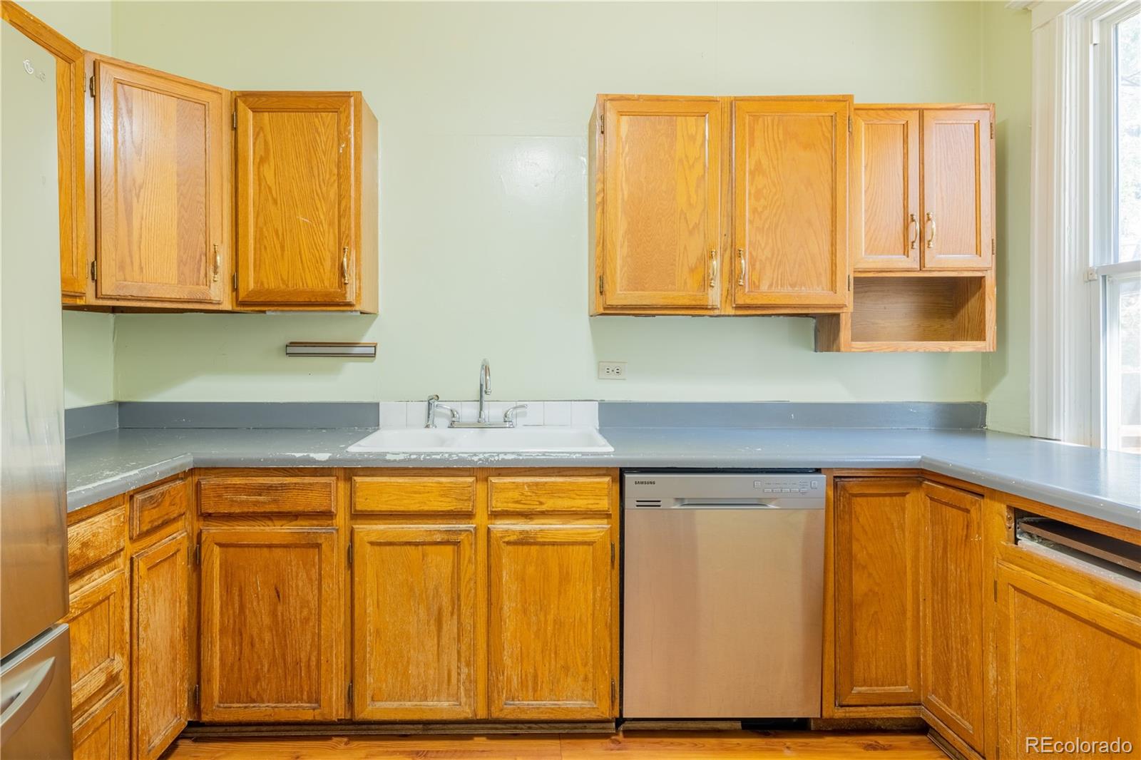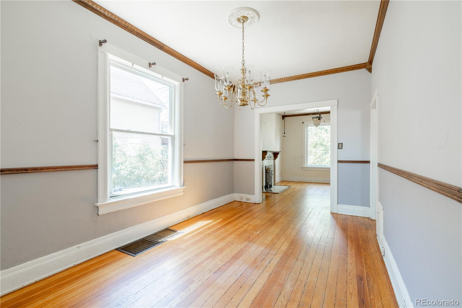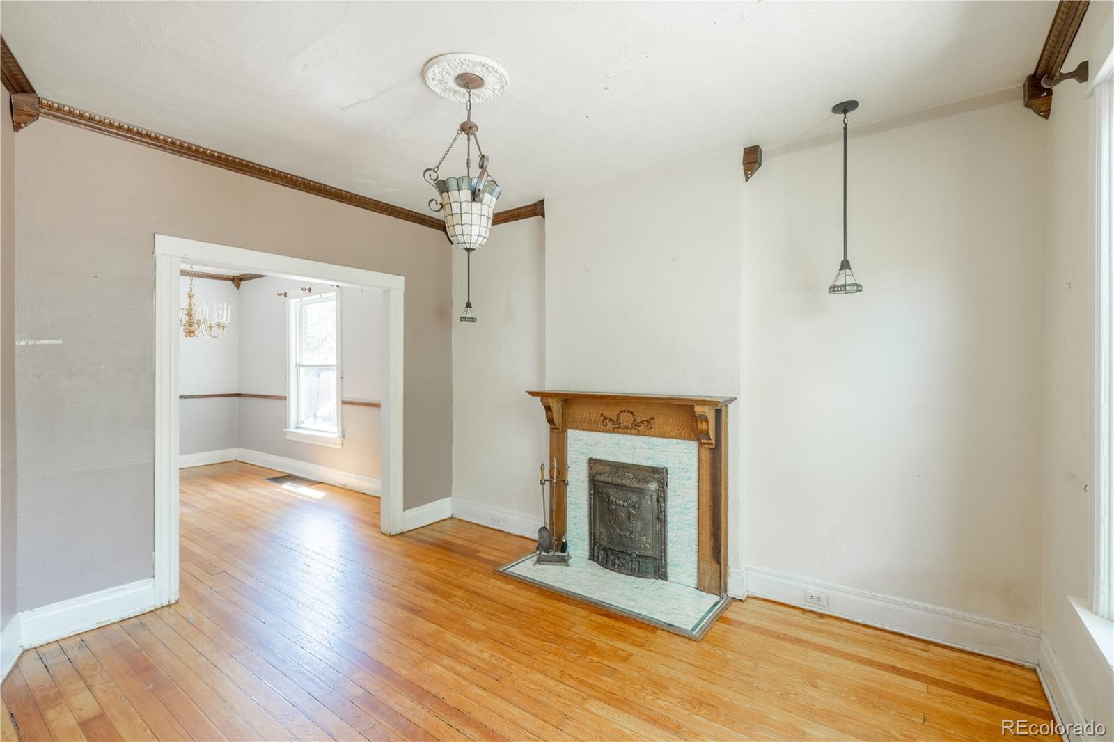 PRICE IMPROVEMENT! Here's your opportunity to purchase a home on a double lot in Denver's Whittier neighborhood for under $600,000! Handcrafted details adorn every surface of this red brick bungalow. Original stained glass lighting, hardwood floors, beautiful tiled copper fireplace with oak mantel and intricate crown moldings transport you back to a time of superior craftsmanship. The spacious main level has 1100 square feet, featuring a giant primary bedroom and ensuite bath with farmhouse sink and clawfoot tub. This large bedroom can easily be converted back to two bedrooms to make this a three bedroom home on the main floor. A classic living room with high ceilings and lots of natural light opens into a dining room with large southern facing windows. The kitchen has a great layout overlooking the huge backyard. Another large bedroom off the kitchen offers a flexible space with the same historic accents and high ceilings. Downstairs 1100 sq ft of unfinished basement offers so much flexibility and potential. This home could easily have 5 bedrooms or a completely separate 2 bedroom apartment. ADU zoning means you can possibly finish the basement with its own address and create a separate income stream with AirBnB, VRBO, or Evolve. An exterior entrance to the basement is a house hacker's dream come true and could be paired with a separate side yard to create privacy and higher ROI. If this wasn't enough, the 50 foot wide double lot has alley access and room for a 4-car garage with an accessory dwelling unit on top. This yard with existing sprinkler system has plenty of room for Colorado living and is just waiting for your artistic vision. Whittier is old-school Denver at its finest with tree-lined streets, beautiful victorian homes, parks, libraries and close proximity to some of the city's hippest neighborhoods. Walk to the Zoo, History Museum, City Park/golf course, Uptown, Cole, Curtis Park, LoDo, RiNo and the nearby light rail station. Opportunity Knocks!