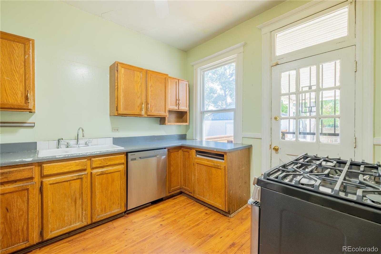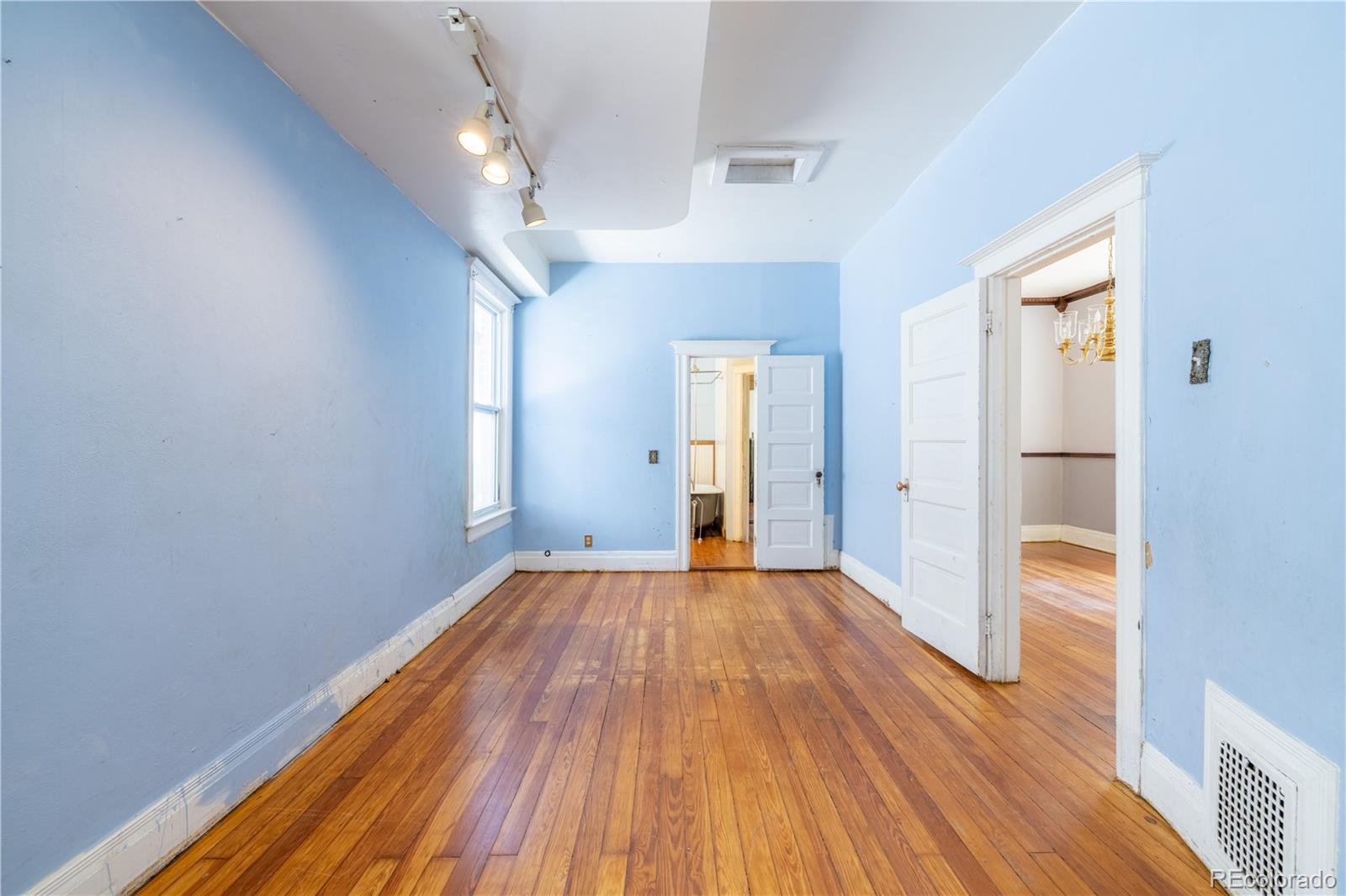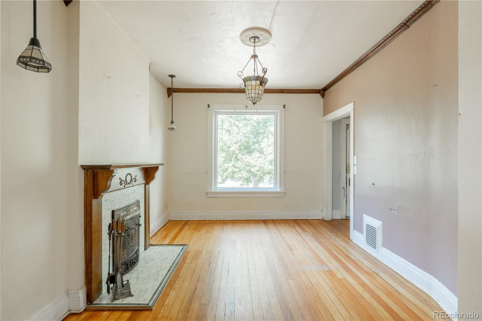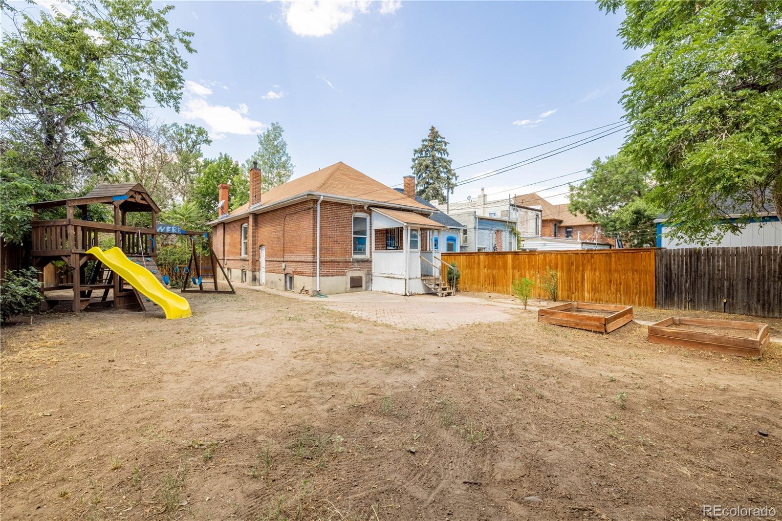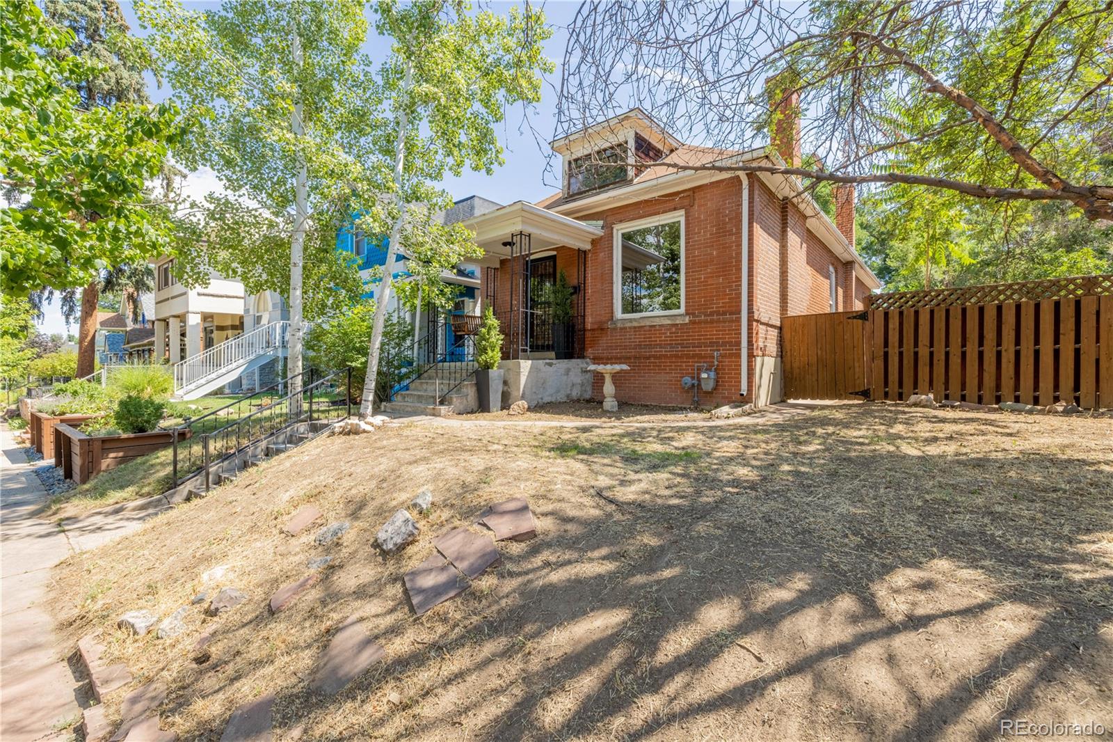 PRICE IMPROVEMENT! Here's your opportunity to purchase a home on a double lot in Denver's Whittier neighborhood. Handcrafted details adorn every surface of this red brick bungalow. Original stained glass lighting, hardwood floors, beautiful tiled copper fireplace with oak mantel and intricate crown moldings transport you back to a time of superior craftsmanship. The spacious main level has 1100 square feet, featuring a giant primary bedroom and ensuite bath with farmhouse sink and clawfoot tub. This large bedroom can easily be converted back to two bedrooms to make this a three bedroom home on the main floor. A classic living room with high ceilings and lots of natural light opens into a dining room with large southern facing windows. The kitchen has a great layout overlooking the huge backyard. Another large bedroom off the kitchen offers a flexible space with the same historic accents and high ceilings. Downstairs 1100 sq ft of unfinished basement offers so much flexibility and potential. This home could easily have 5 bedrooms or a completely separate 2 bedroom apartment. ADU zoning means you can possibly finish the basement with its own address and create a separate income stream with AirBnB, VRBO, or Evolve. An exterior entrance to the basement is a house hacker's dream come true and could be paired with a separate side yard to create privacy and higher ROI. If this wasn't enough, the 50 foot wide double lot has alley access and room for a 4-car garage with an accessory dwelling unit / carriage house on top. This yard with existing sprinkler system has plenty of room for Colorado living and is just waiting for your artistic vision. Whittier is old-school Denver at its finest with tree-lined streets, beautiful victorian homes, parks, libraries and close proximity to some of the city's hippest neighborhoods. Walk to the Zoo, History Museum, City Park/golf course, Uptown, Cole, Curtis Park, LoDo, RiNo and the nearby light rail station. Opportunity Knocks!