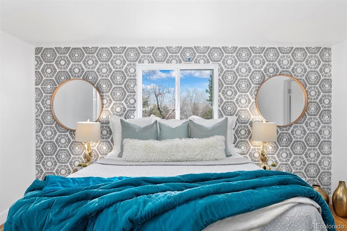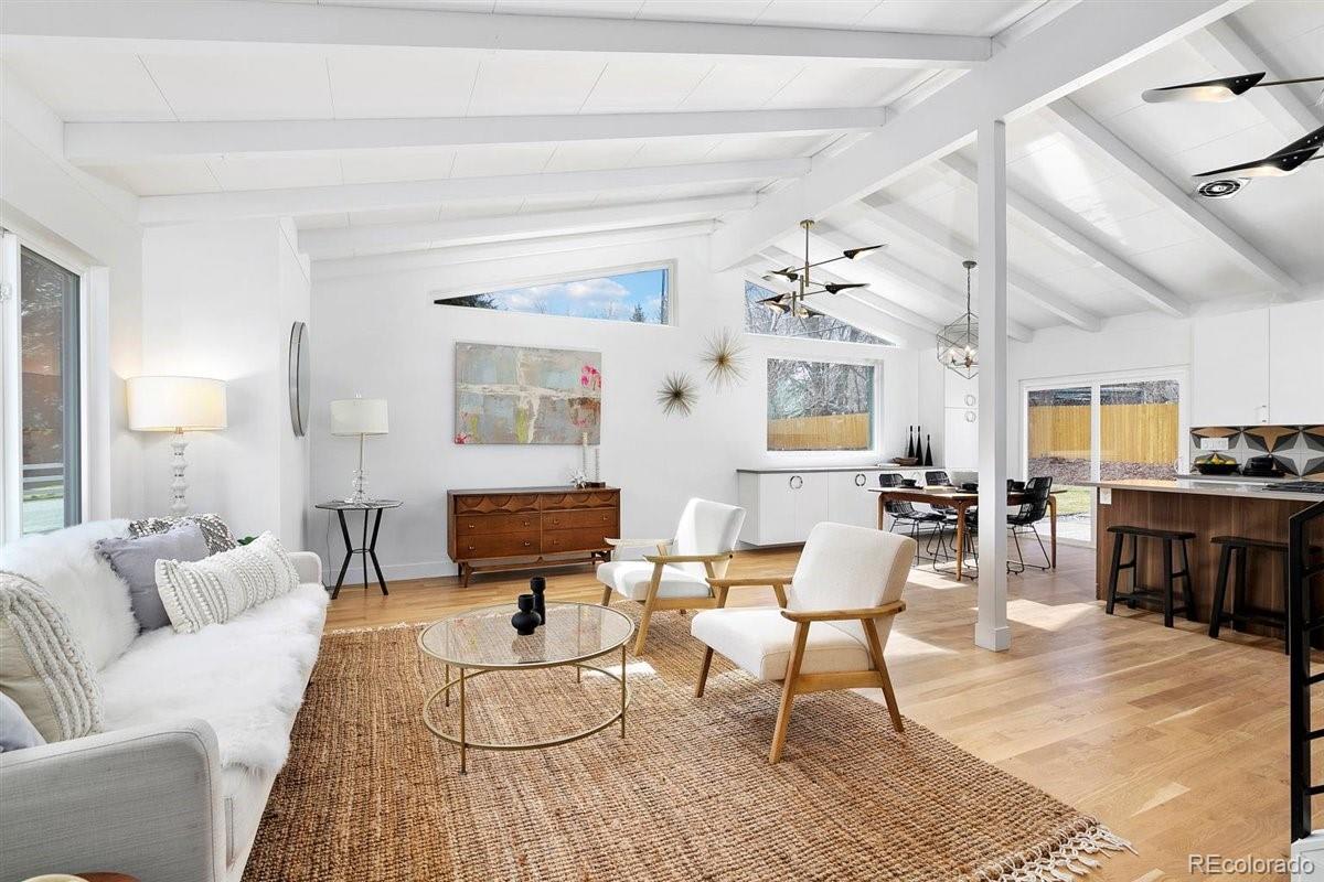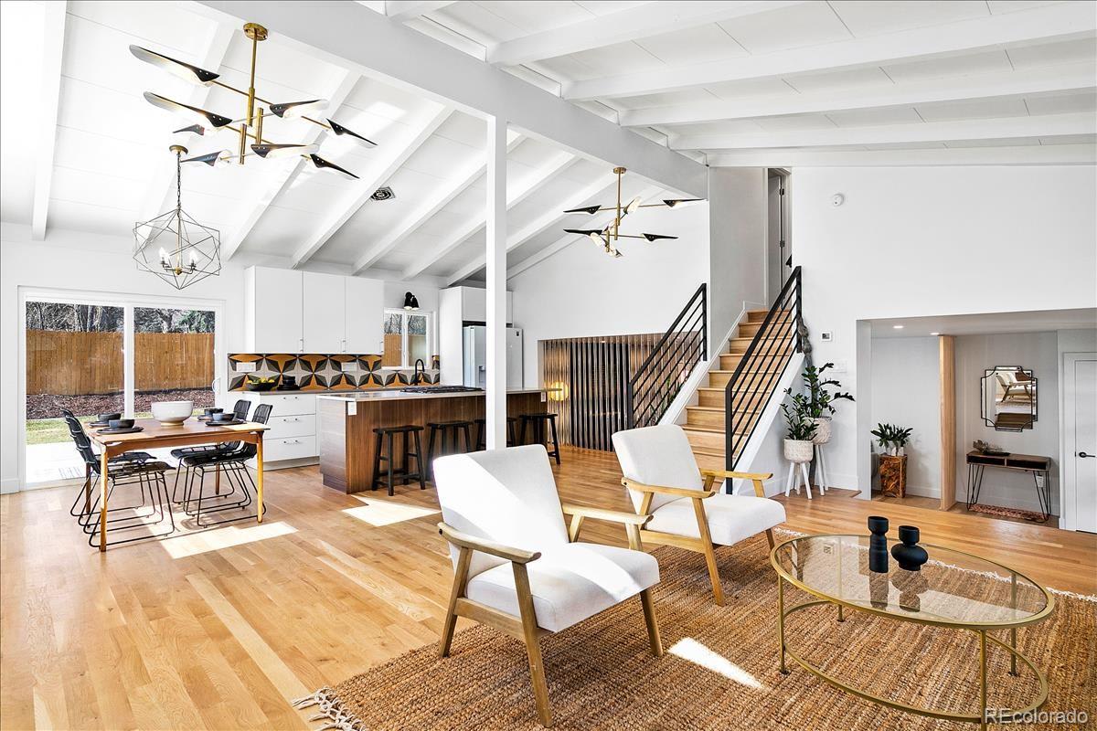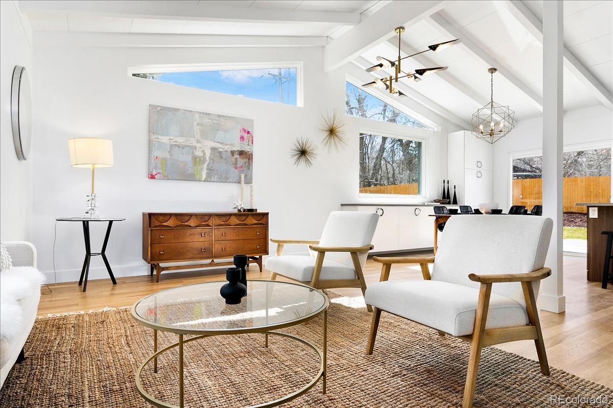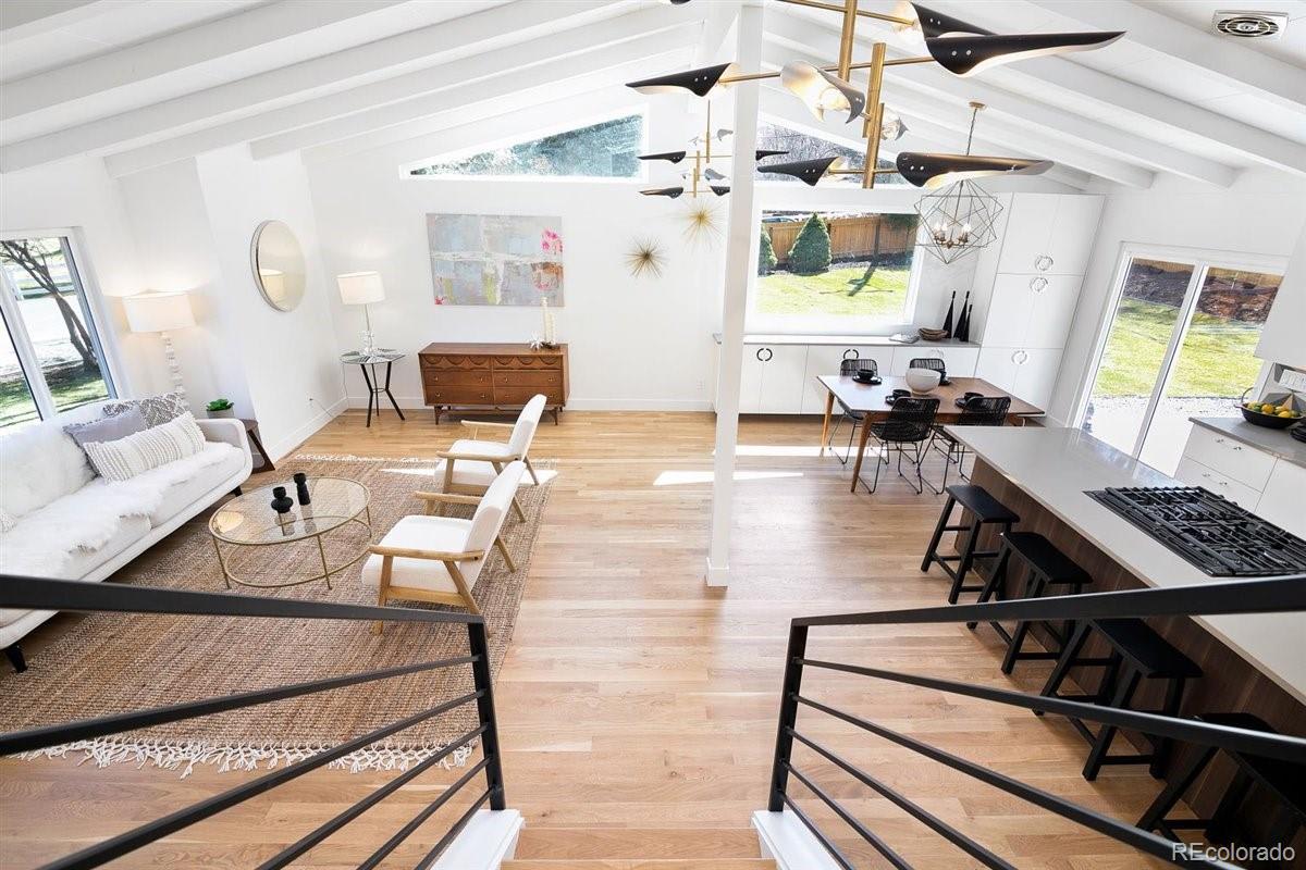 Imagine living moments from Denver and Golden in a peaceful neighborhood where your neighbors waive as you pass by. Nestled on a quiet cul-de-sac in Golden Applewood, this gorgeous Mid-Century home has been restored to perfection by Roxy Blu Homes. With 5 bedrooms, 4 baths, and 3 separate living rooms this house lives large! Featuring 4 bedrooms upstairs, the Owner's Suite is complete with five piece bath, walk in closet, and private balcony. The spacious second and third bedrooms have plenty of room for desks if you're home schooling. A fourth bedroom upstairs and another in the basement are perfect for home office and guests. The open floor plan is amazing for entertaining and being together, but for those moments when you need some space, duck down to the lower living room and cozy up around the fireplace, or stow away in the basement rec room and watch some movies. It only gets better when you step outside with over 1/3 of an acre lot and a creek running past the backyard. Laze in the backyard and watch the deer stroll by or walk to parks, hiking trails, and the golf course minutes from your front door. Come see this rare gem and make it your new utopia.