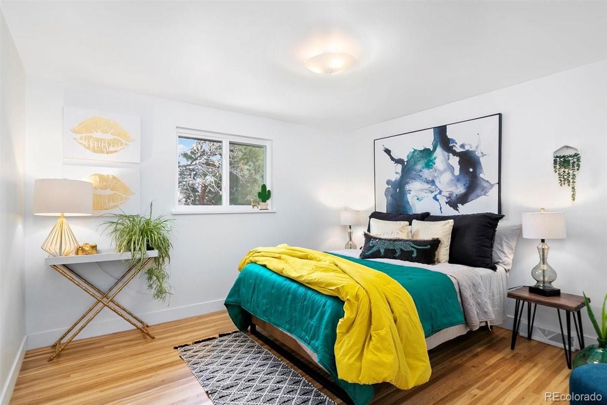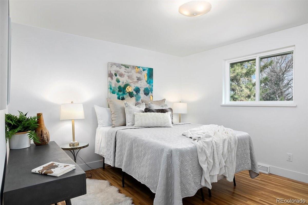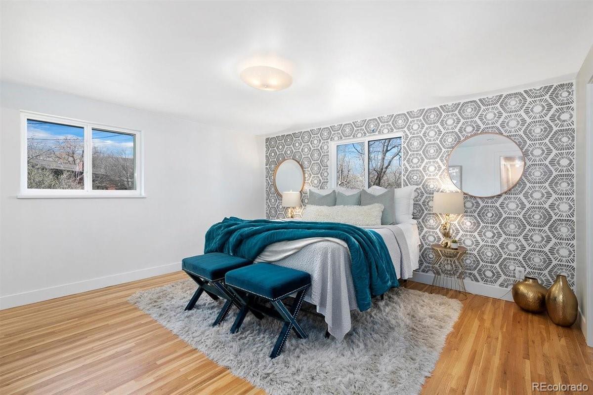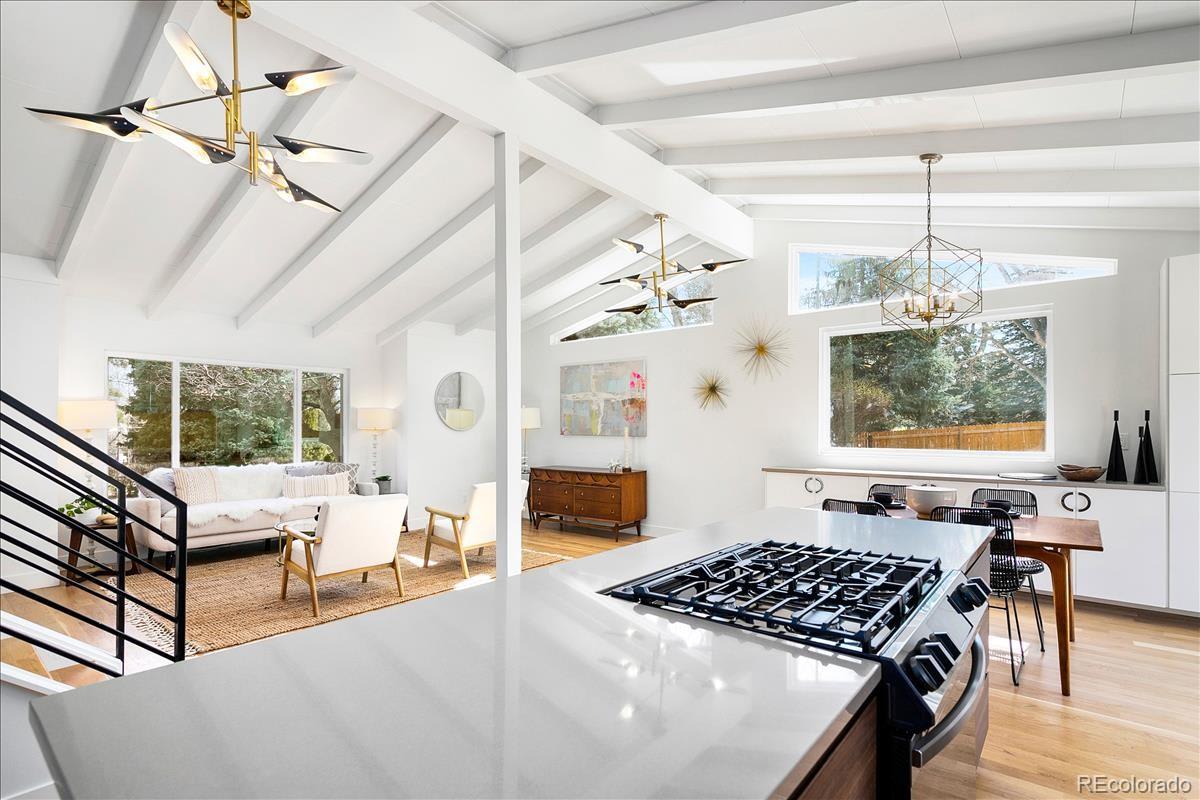 Imagine living moments from Denver and Golden in a peaceful neighborhood where your neighbors waive as you pass by. Nestled on a quiet cul-de-sac in Golden Applewood, this gorgeous Mid-Century home has been restored to perfection by Roxy Blu Homes. With 5 bedrooms, 4 baths, and 3 separate living rooms this house lives large! Featuring 4 bedrooms upstairs, the Owner's Suite is complete with five piece bath, walk in closet, and private balcony. The spacious second and third bedrooms have plenty of room for desks if you're home schooling. A fourth bedroom upstairs and another in the basement are perfect for home office and guests. The open floor plan is amazing for entertaining and being together, but for those moments when you need some space, duck down to the lower living room and cozy up around the fireplace, or stow away in the basement rec room and watch some movies. It only gets better when you step outside with over 1/3 of an acre lot and a creek running past the backyard. Laze in the backyard and watch the deer stroll by or walk to parks, hiking trails, and the golf course minutes from your front door. Come see this rare gem and make it your new utopia.