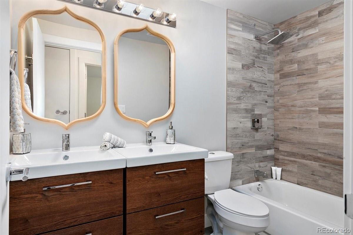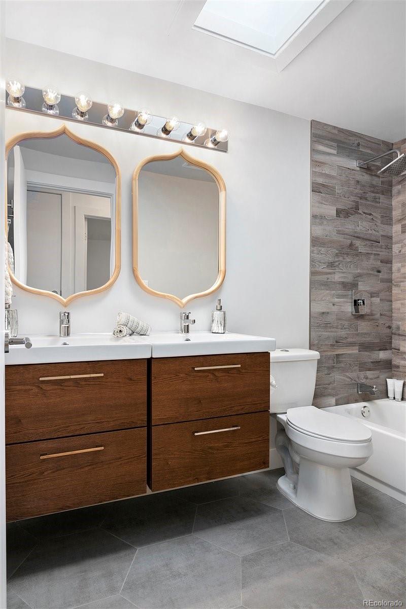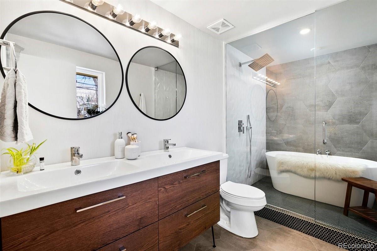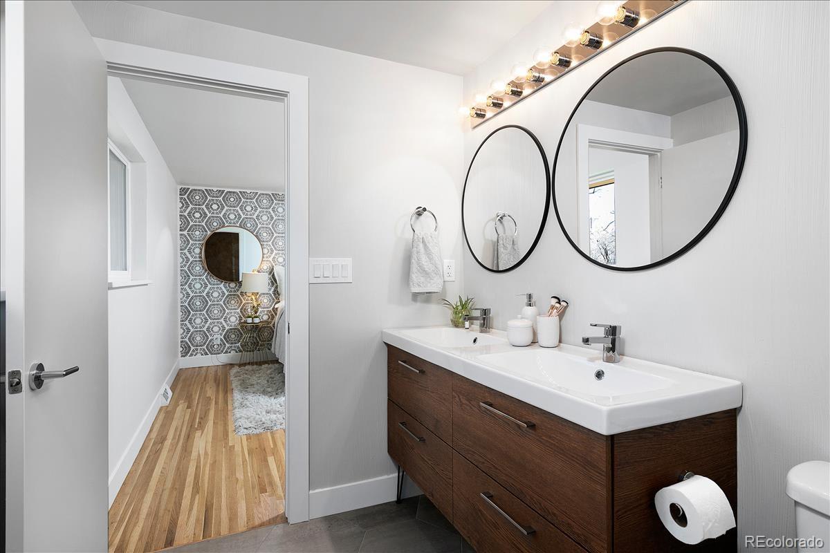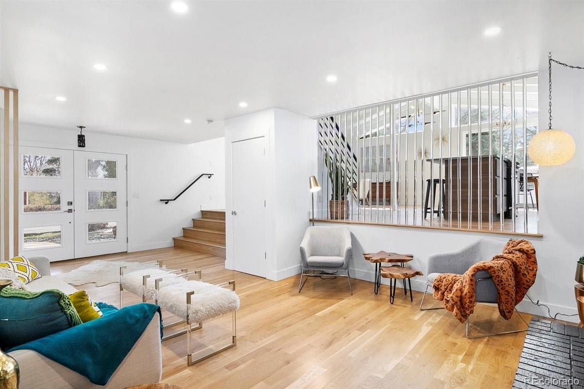 Imagine living moments from Denver and Golden in a peaceful neighborhood where your neighbors waive as you pass by. Nestled on a quiet cul-de-sac in Golden Applewood, this gorgeous Mid-Century home has been restored to perfection by Roxy Blu Homes. With 5 bedrooms, 4 baths, and 3 separate living rooms this house lives large! Featuring 4 bedrooms upstairs, the Owner's Suite is complete with five piece bath, walk in closet, and private balcony. The spacious second and third bedrooms have plenty of room for desks if you're home schooling. A fourth bedroom upstairs and another in the basement are perfect for home office and guests. The open floor plan is amazing for entertaining and being together, but for those moments when you need some space, duck down to the lower living room and cozy up around the fireplace, or stow away in the basement rec room and watch some movies. It only gets better when you step outside with over 1/3 of an acre lot and a creek running past the backyard. Laze in the backyard and watch the deer stroll by or walk to parks, hiking trails, and the golf course minutes from your front door. Come see this rare gem and make it your new utopia.