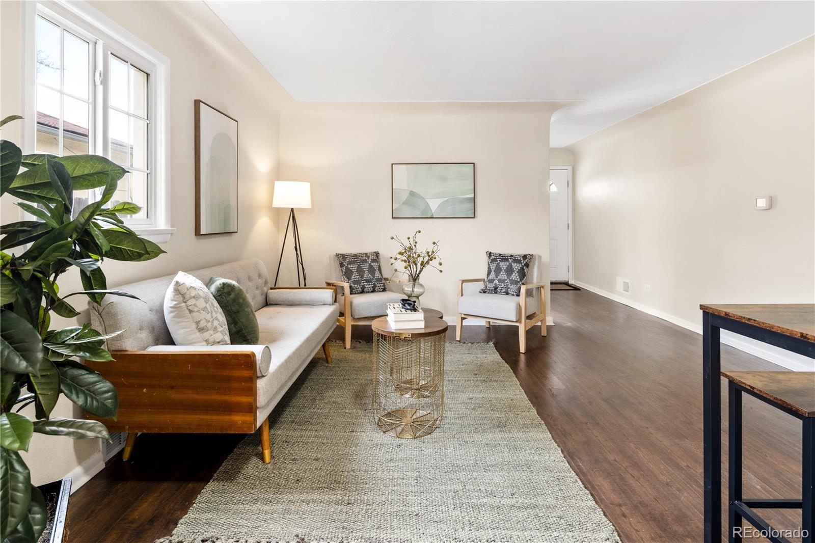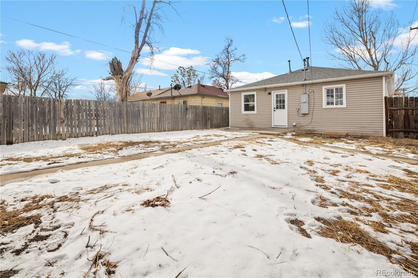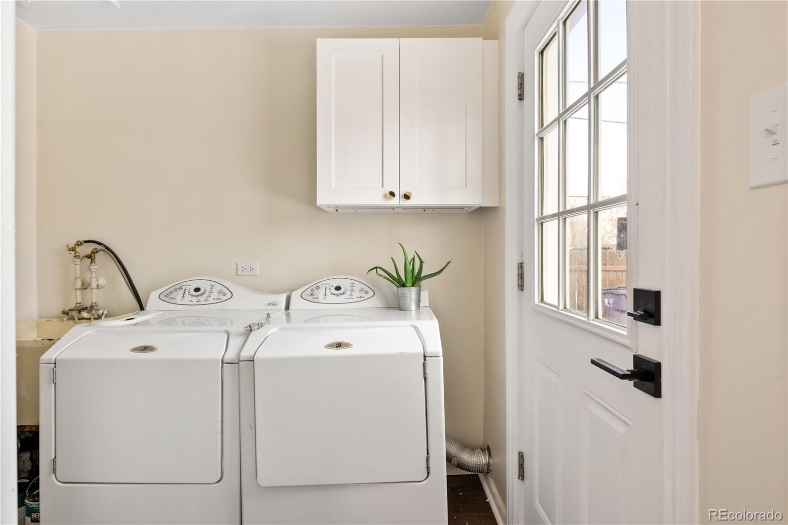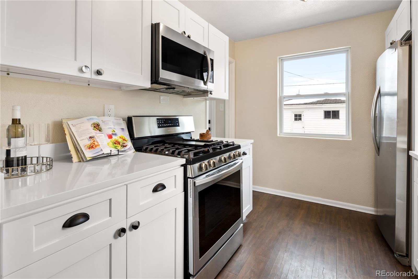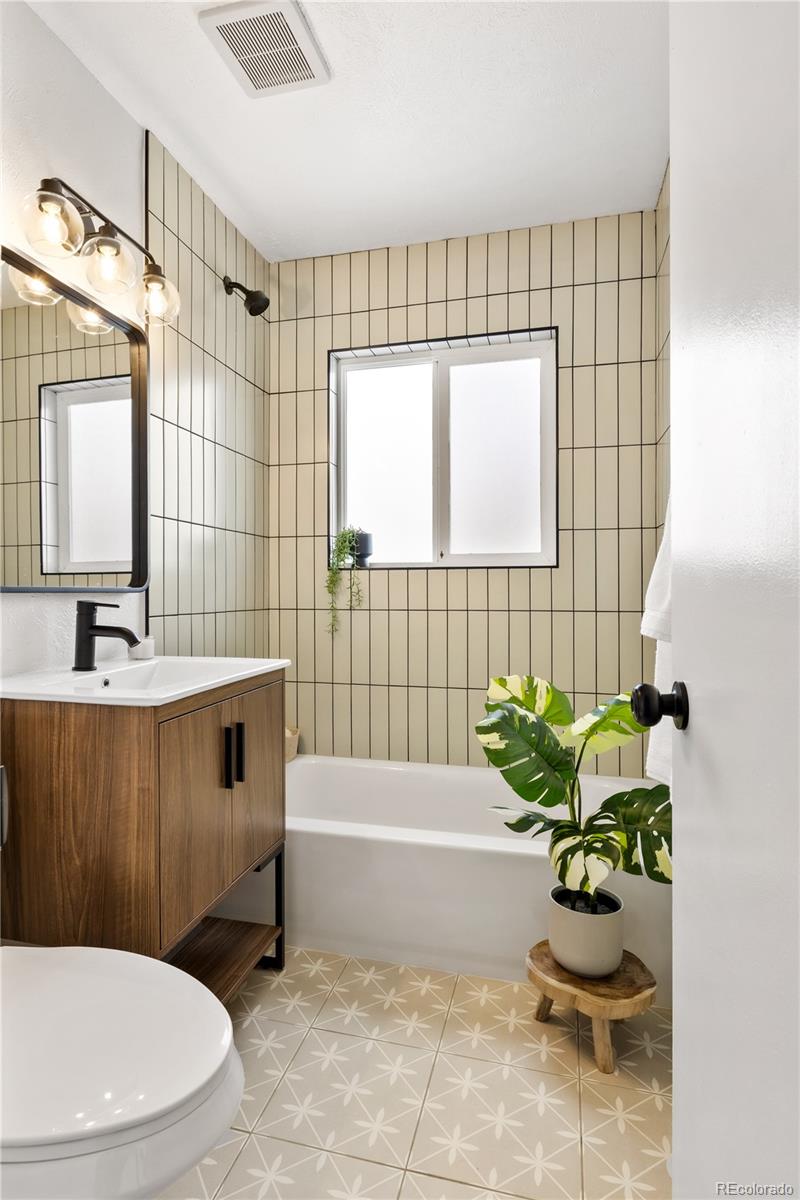 Welcome to Elyria Swansea, one of Denver's most storied neighborhoods. This charming ranch sits on a large corner lot and has so much to offer. Step into a completely remodeled interior space, where modern touches blend with midcentury charm. The design is a blend of warm clean touches with a pop of dark hardwood floors underfoot. Hand sculpted coved ceilings eliminate echo and invite visitors to stay a while and share a conversation. There is so much new in this home, from double pane windows, shaker cabinets to trendy tile, upscale hardware and LED lighting. With three bedrooms and one bathroom this home invites you to say goodbye to renting and embrace ownership. Big picture windows throughout allow for the abundant Colorado sunshine to fill and warm the space. Enjoy cooking in the stylish updated kitchen with white cabinets, chic quartz counters and stainless steel appliances. The bathroom has been completely redesigned with all new tile, black hardware, new bathtub/shower, wood vanity and sconce lighting. The large laundry room (washer and dryer included) has a utility sink and leads to a spacious fenced backyard, offering a perfect blend of convenience and flexibility. Bring the fur babies and your green thumb to enjoy this expansive private oasis. The detached 1.5 car garage is oversized with shelves and room for storage plus more parking in the driveway. Roof is five years old and water heater is newer. This home is conveniently located about five minutes from I-70 ensuring quick access to downtown, DIA, the mountains and all the trendy spots in Denver. One block to the East is a large community park, and just a few blocks to the south is the brand new I-70 Cover Park with huge soccer pitch, playgrounds and more. Just a quick drive to grocery stores, shopping and local restaurants. Visit www.5096stpaul.com for more. Seller to install new sewer line upon successful Closing. Se Habla Espanol.