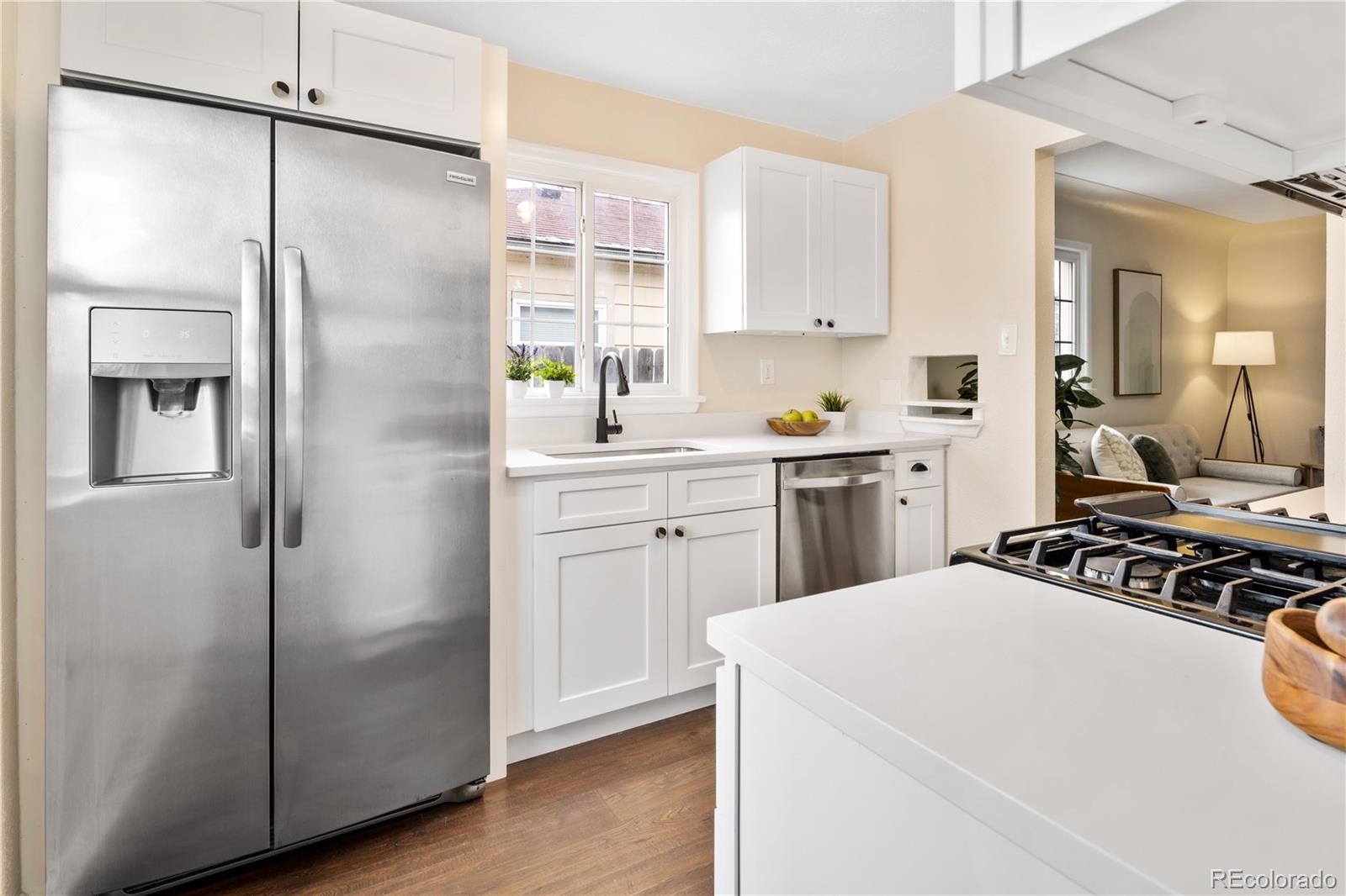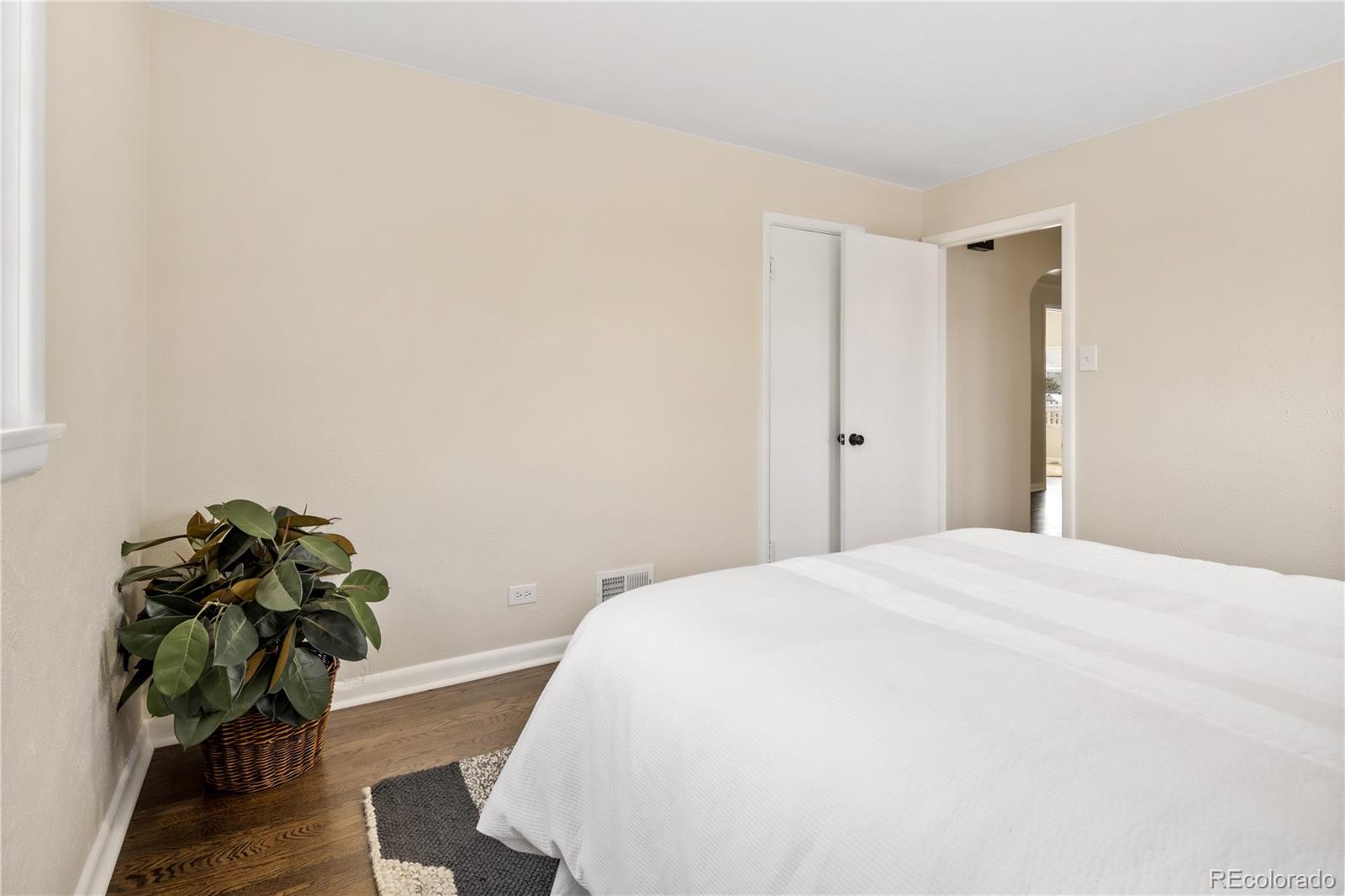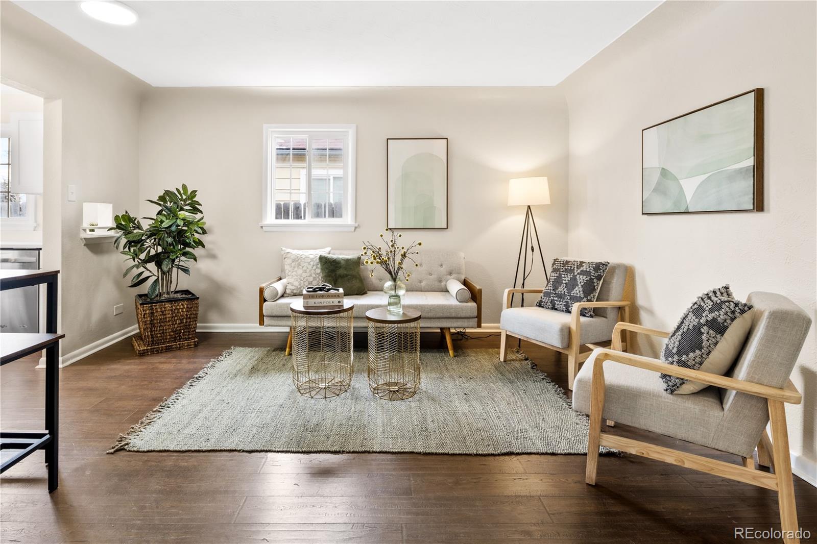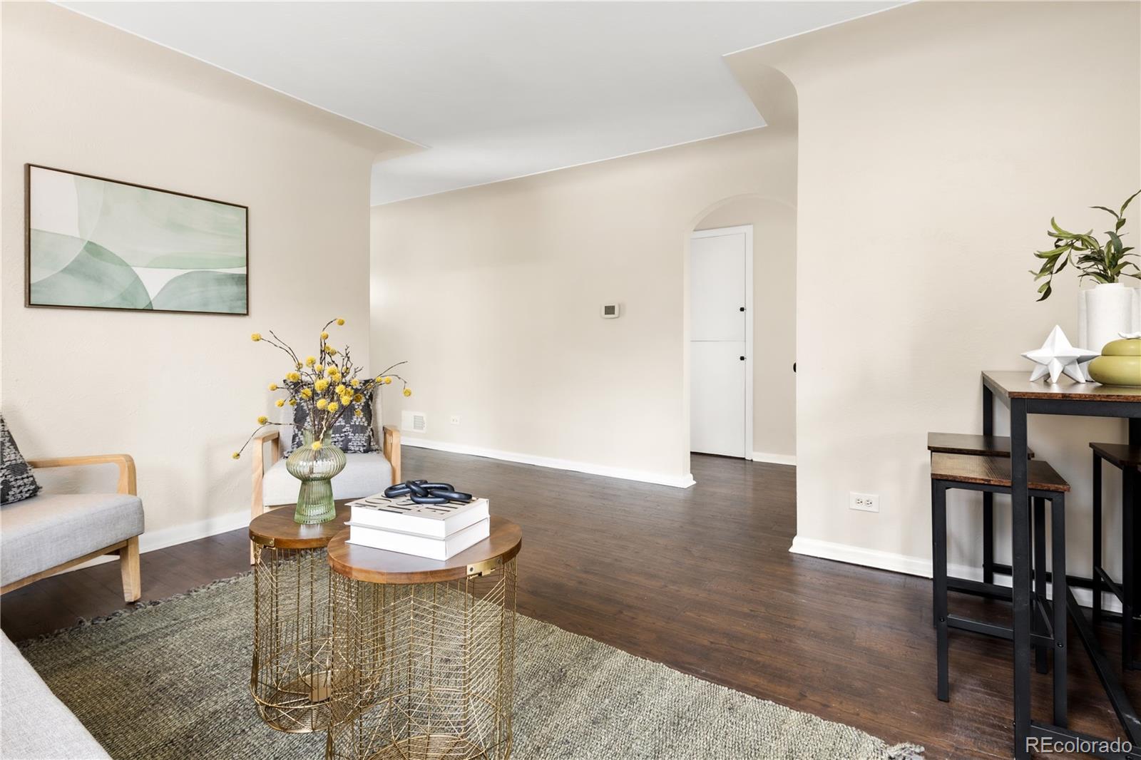 Welcome to Elyria Swansea, one of Denver's most storied neighborhoods. This charming ranch sits on a large corner lot and has so much to offer. Step into a completely remodeled interior space, where modern touches blend with midcentury charm. The design is a blend of warm clean touches with a pop of dark hardwood floors underfoot. Hand sculpted coved ceilings eliminate echo and invite visitors to stay a while and share a conversation. There is so much new in this home, from double pane windows, shaker cabinets to trendy tile, upscale hardware and LED lighting. With three bedrooms and one bathroom this home invites you to say goodbye to renting and embrace ownership. Big picture windows throughout allow for the abundant Colorado sunshine to fill and warm the space. Enjoy cooking in the stylish updated kitchen with white cabinets, chic quartz counters and stainless steel appliances. The bathroom has been completely redesigned with all new tile, black hardware, new bathtub/shower, wood vanity and sconce lighting. The large laundry room (washer and dryer included) has a utility sink and leads to a spacious fenced backyard, offering a perfect blend of convenience and flexibility. Bring the fur babies and your green thumb to enjoy this expansive private oasis. The detached 1.5 car garage is oversized with shelves and room for storage plus more parking in the driveway. Roof is five years old and water heater is newer. This home is conveniently located about five minutes from I-70 ensuring quick access to downtown, DIA, the mountains and all the trendy spots in Denver. One block to the East is a large community park, and just a few blocks to the south is the brand new I-70 Cover Park with huge soccer pitch, playgrounds and more. Just a quick drive to grocery stores, shopping and local restaurants. Visit www.5096stpaul.com for more. Seller to install new sewer line upon successful Closing. Se Habla Espanol.
