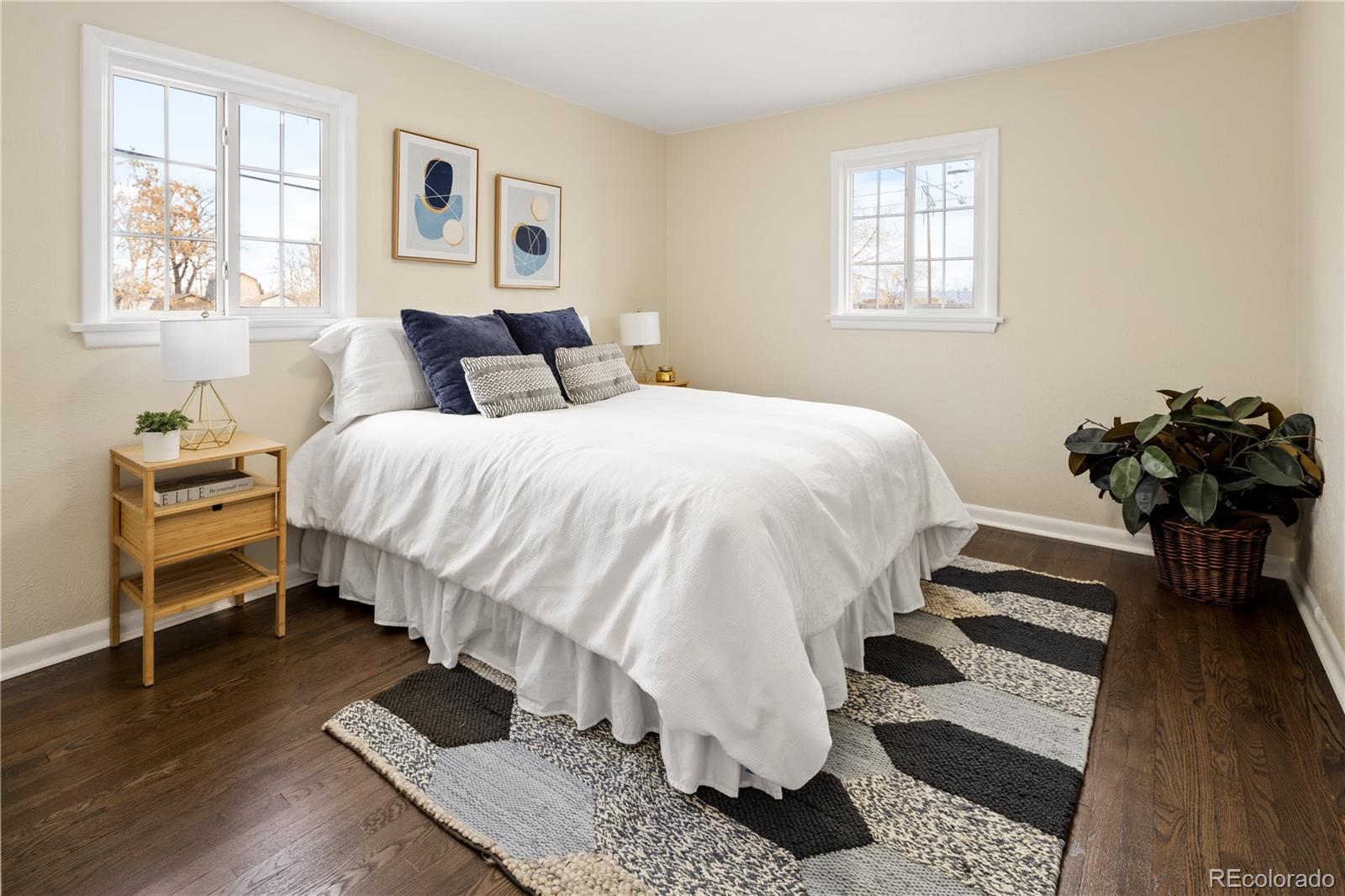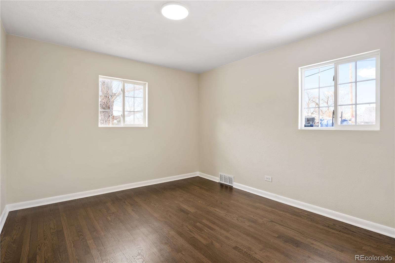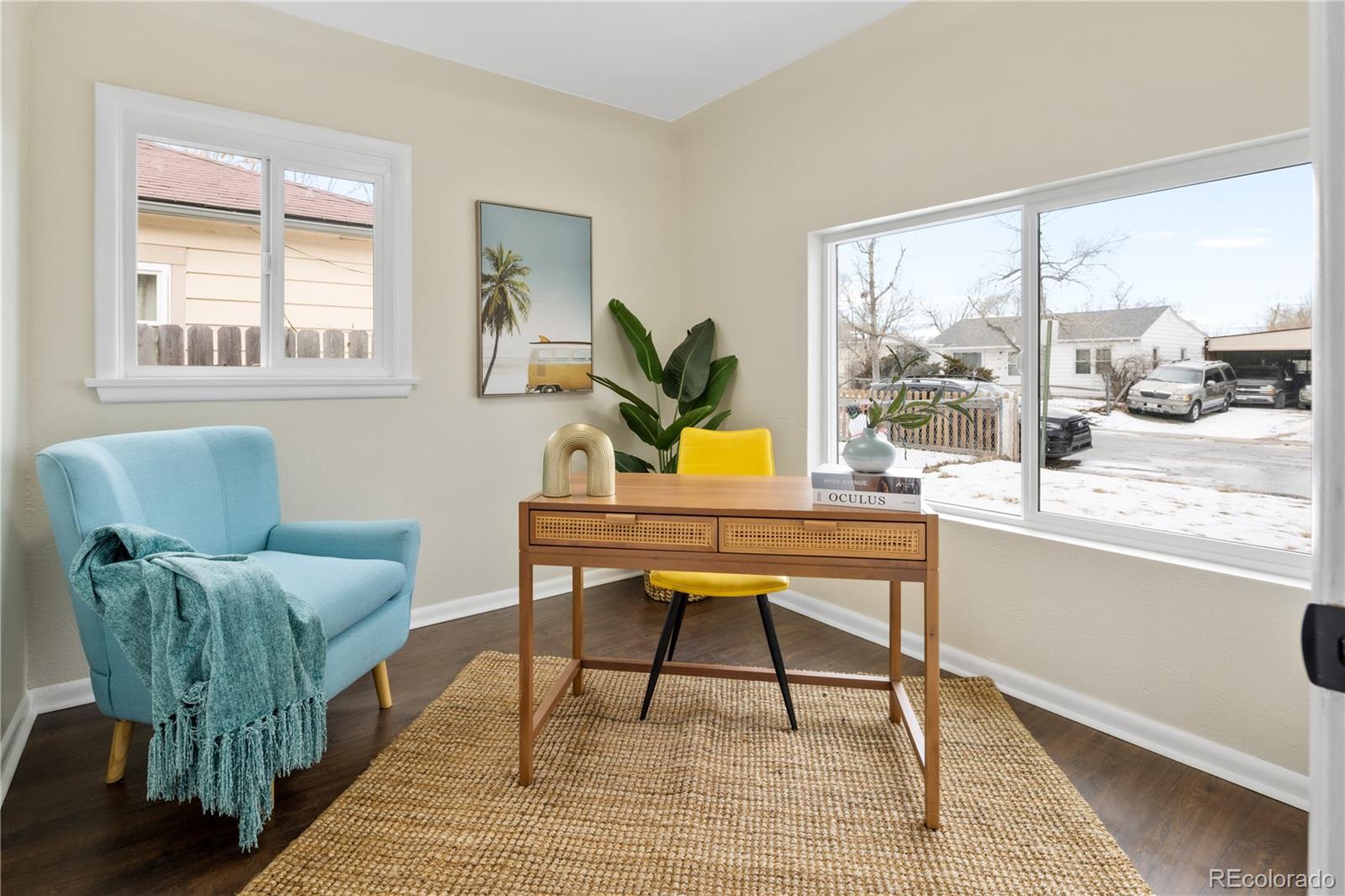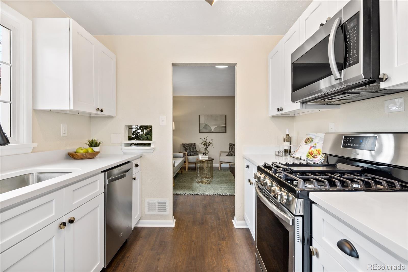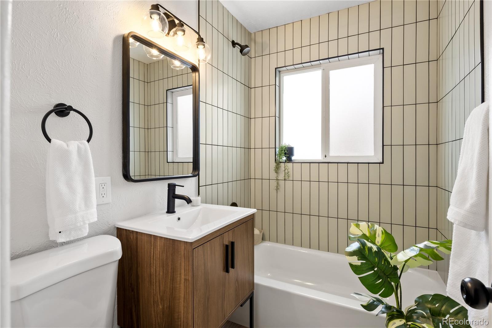 Welcome to Elyria Swansea, one of Denver's most storied neighborhoods. This charming ranch sits on a large corner lot and has so much to offer. Step into a completely remodeled interior space, where modern touches blend with midcentury charm. The design is a blend of warm clean touches with a pop of dark hardwood floors underfoot. Hand sculpted coved ceilings eliminate echo and invite visitors to stay a while and share a conversation. There is so much new in this home, from double pane windows, shaker cabinets to trendy tile, upscale hardware and LED lighting. With three bedrooms and one bathroom this home invites you to say goodbye to renting and embrace ownership. Big picture windows throughout allow for the abundant Colorado sunshine to fill and warm the space. Enjoy cooking in the stylish updated kitchen with white cabinets, chic quartz counters and stainless steel appliances. The bathroom has been completely redesigned with all new tile, black hardware, new bathtub/shower, wood vanity and sconce lighting. The large laundry room (washer and dryer included) has a utility sink and leads to a spacious fenced backyard, offering a perfect blend of convenience and flexibility. Bring the fur babies and your green thumb to enjoy this expansive private oasis. The detached 1.5 car garage is oversized with shelves and room for storage plus more parking in the driveway. Roof is five years old and water heater is newer. This home is conveniently located about five minutes from I-70 ensuring quick access to downtown, DIA, the mountains and all the trendy spots in Denver. One block to the East is a large community park, and just a few blocks to the south is the brand new I-70 Cover Park with huge soccer pitch, playgrounds and more. Just a quick drive to grocery stores, shopping and local restaurants. Visit www.5096stpaul.com for more. Seller to install new sewer line upon successful Closing. Se Habla Espanol.
