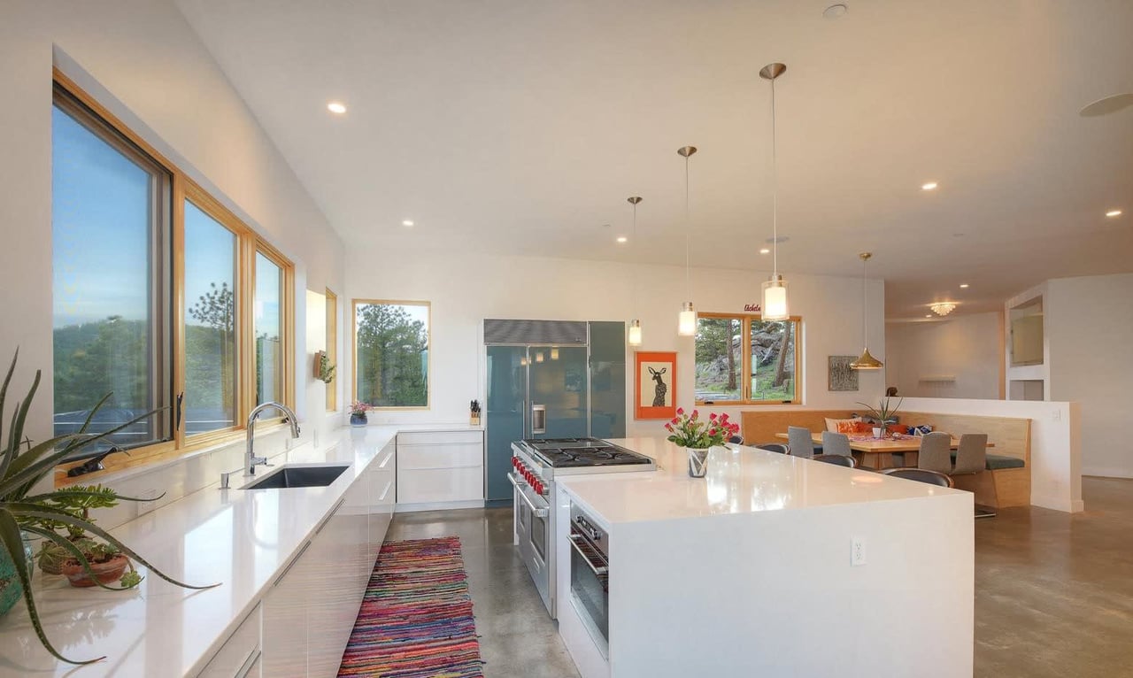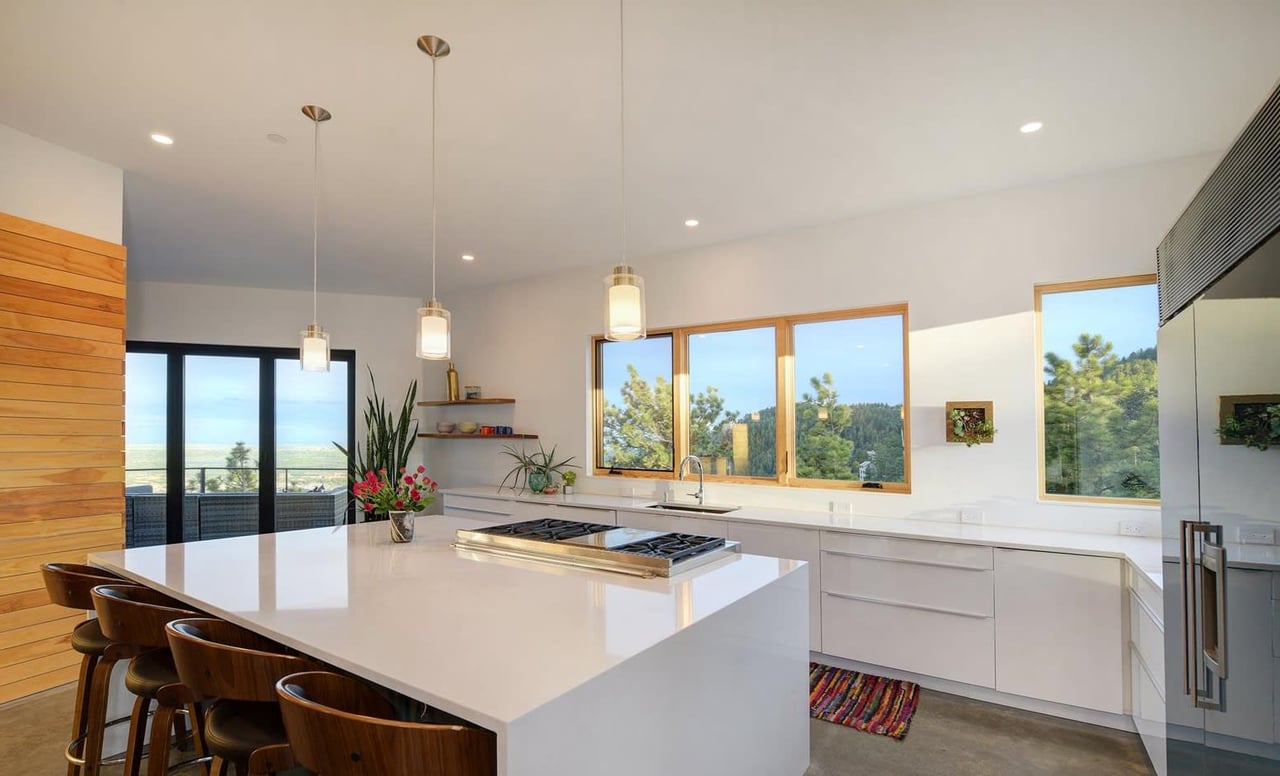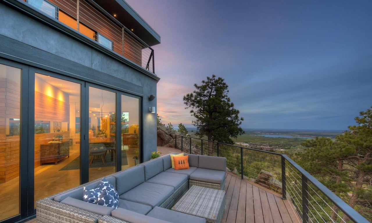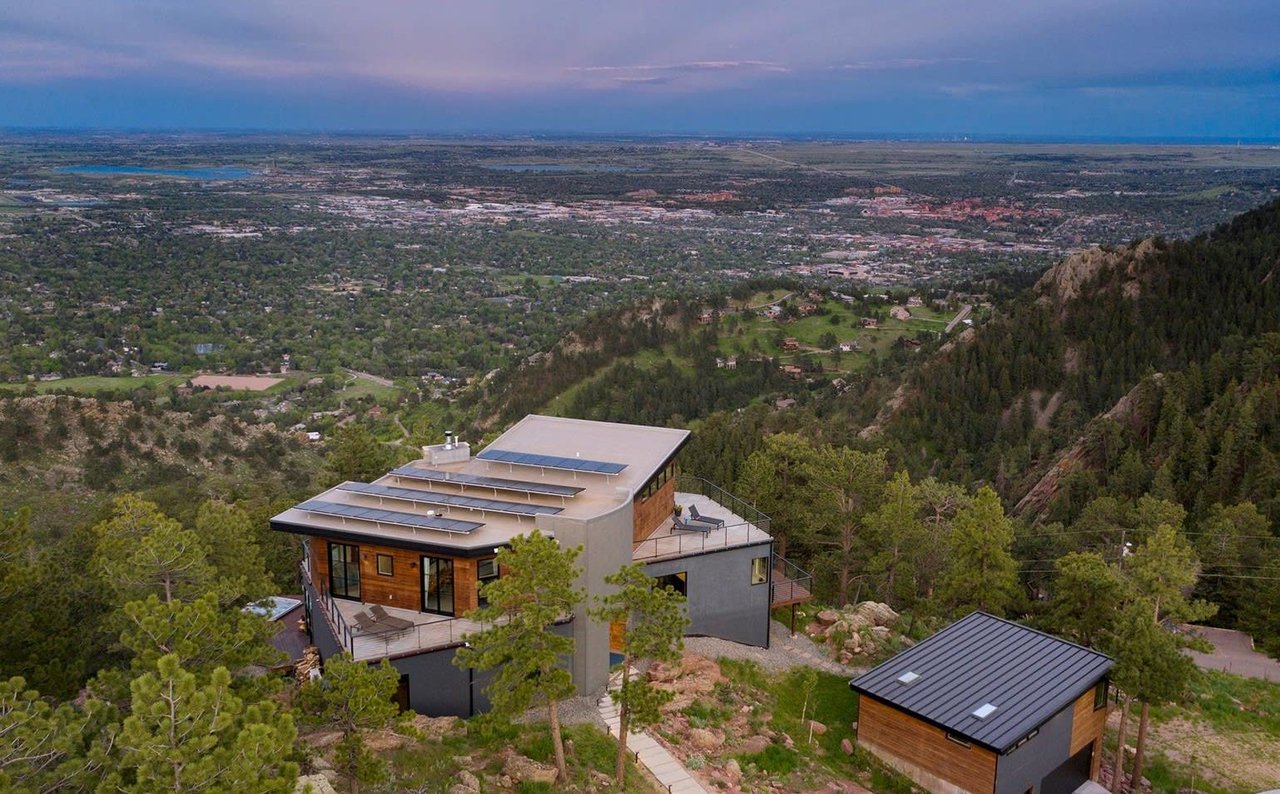 Stunning designer style, abundant outdoor space, and breathtaking views fill this exceptional Pine Brook Hills compound, featuring a contemporary 4BD/4BA main house and a separate 1BD/1BA guest house. Built in 2017, the chic residence features unrivaled privacy nestled among dramatic rock outcroppings. The interior boasts concrete and wide-plank hardwood floors and walls of windows. Enjoy expansive living, media, and dining rooms surrounded by decks, a spa, and nano wall showcasing jaw-dropping vistas. The eat-in kitchen includes upscale appliances, plus a banquette and breakfast bar seating. The upper-level owner's suite dazzles with a private deck and gorgeous spa bath-luxurious secondary beds and baths, a home office, game room, and gym complete the home. Above the three-car garage, a contemporary and fully equipped private space is ideal for guests or multigenerational living. This extraordinary property offers proximity to trails while just minutes from Downtown.